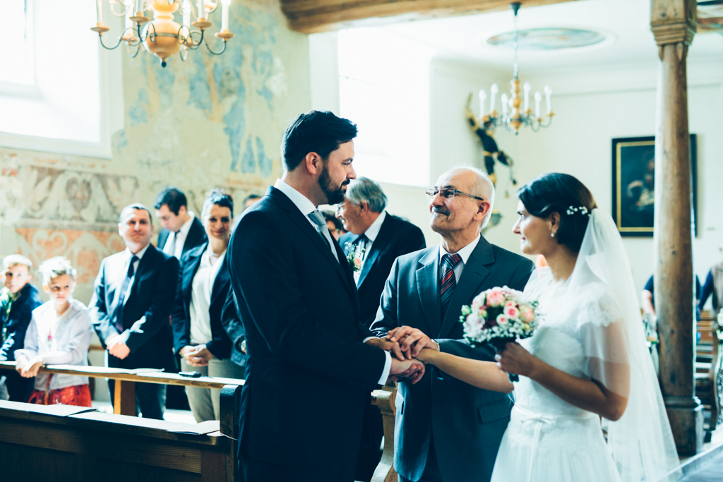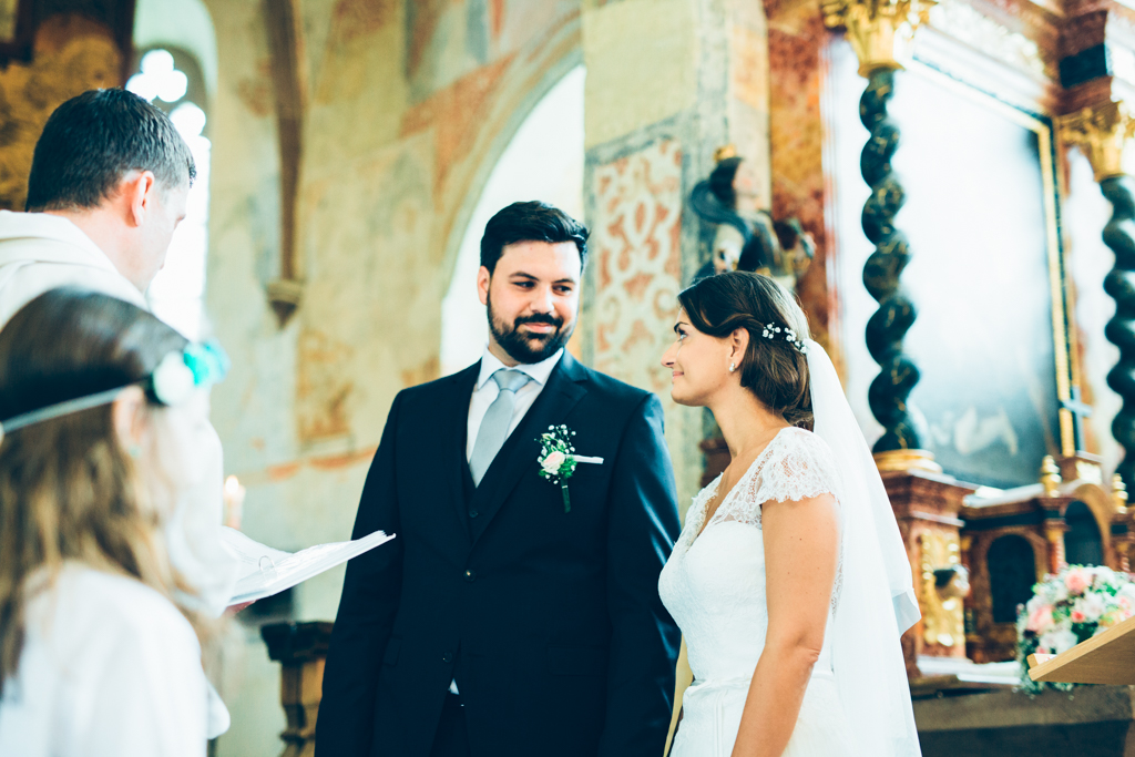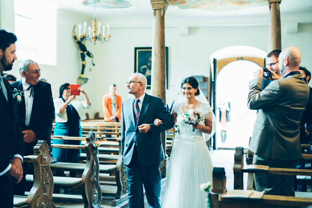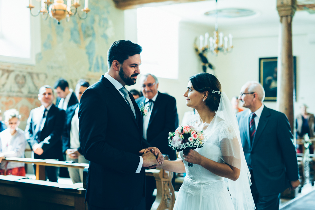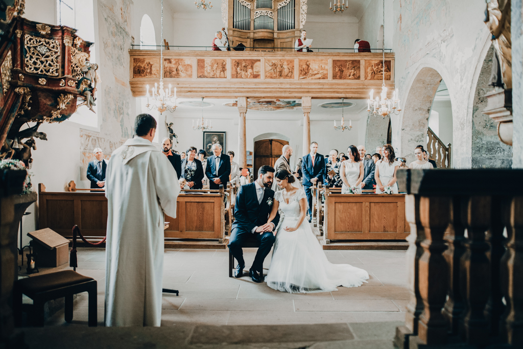 Die kirchliche Trauung von Kerstin und Franz fand in Niederrottweil nahe Freiburg in einer sehr alten und einzigartigen Kirche statt. Die wunderschöne Braut verzauberte mit ihrer Ausstrahlung nicht nur ihren Bräutigam, sondern zog uns alle in ihren Bann. Die rauschende Feier fand dann im nahegelegenen Merdingen im Dialekt statt. Nicht das erste Mal, dass wir in dem Glashaus eine Feier begleiten durften.