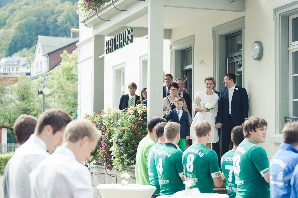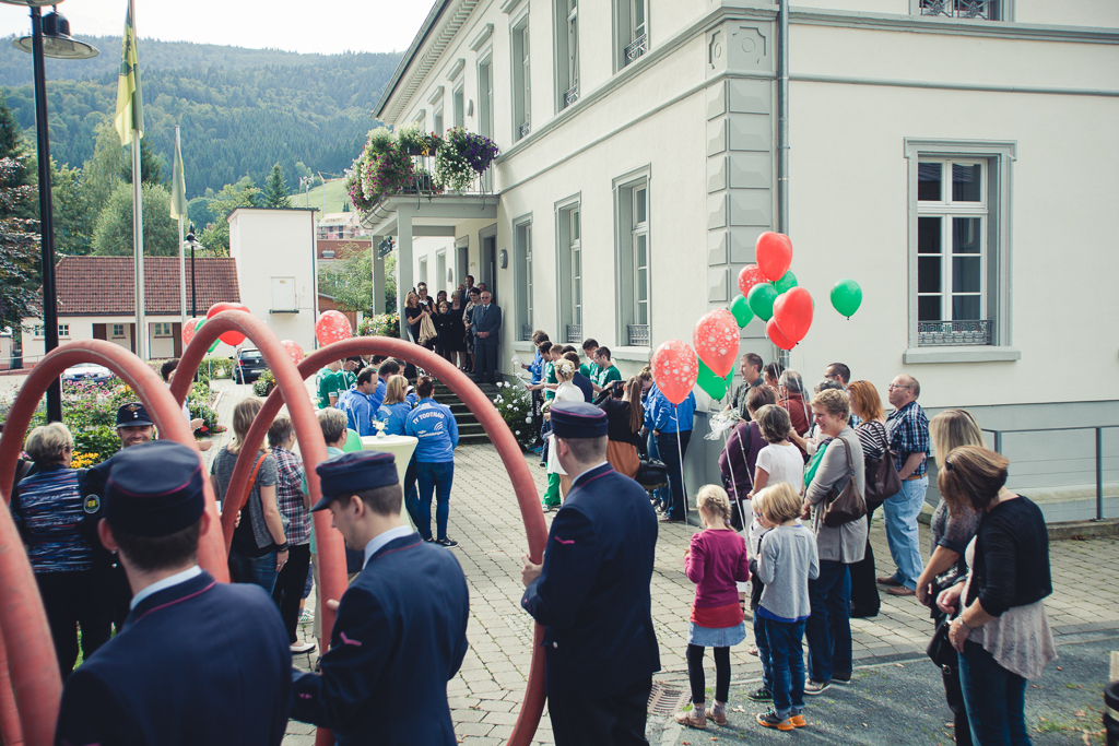 Im schönen Standesamt in Todtnau mit tollem Blick auf den Schwarzwald, fand die Hochzeit von Katrin und Michael statt. Das herzliche Paar genoss den Tag sichtlich und auch Sohn Paul hatte seinen Spaß. Überrascht wurde das Paar nach der Trauung von der örtlichen Feuerwehr, die Spalier stand, um dem frisch vermählten Paar zu gratulieren. Die Hochzeitsfeier, die am nächsten Tag im Blasihof in Gschwend stattfand, durften wir auch mit der Kamera begleiten (siehe Album „Hochzeit Katrin und Michael“).